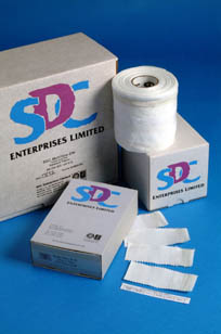 產(chǎn)品尺寸和包裝: 10厘米寬,每盒50米;10厘米寬,每盒10米;10厘米x4厘米,每盒250片。